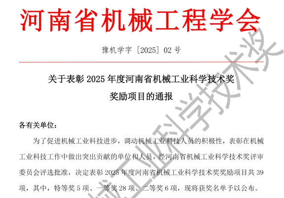 2025年度河南省机械工业科学技术奖通报 [详细]
