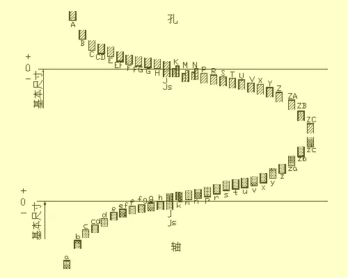 基轴制--是指基本偏差为一定的轴的公差带与不同基本偏差的孔的公差带形成各种配合的一种制度。见右下图。基轴制的轴称为基准轴,其基本偏差代号为h,其上偏差为零。