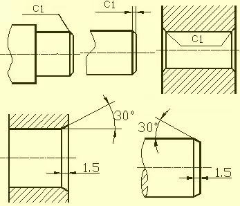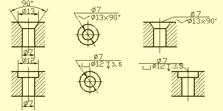 常见孔的尺寸注法(盲孔、螺纹孔、沉孔、锪平孔);倒角的尺寸注法。