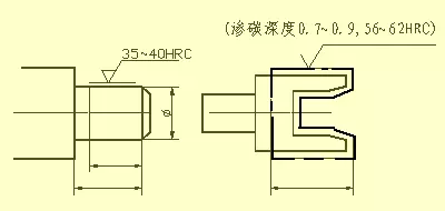 需要将零件局部热处理或局部镀(涂)覆时,应用粗点画线画出其范围并标注出相应尺寸,也可将其要求注写在表面粗糙度符号长边的横线上。