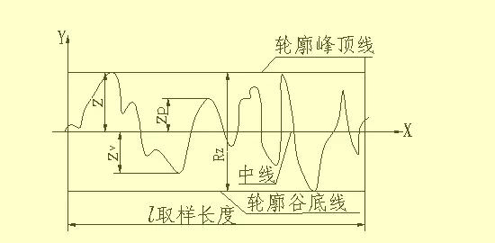 2))轮廓最大高度(Rz)--在取样长度内,轮廓峰顶线与轮廓峰底线的距离。