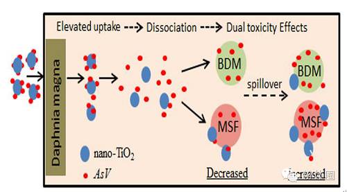 研究发现纳米二氧化钛和五价砷在大型蚤体内的分布具有显著相关性,这也印证了纳米二氧化钛的载体作用。