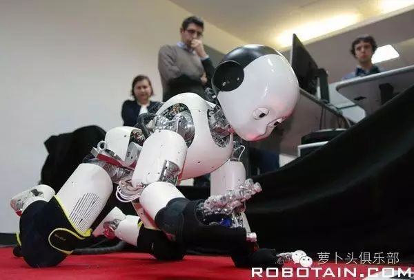 机器人iCub是由欧洲创新大学协会(欧洲10所大学组成)开发的一个外形像2岁儿童的机器人,用于研究儿童行走、认知过程。机器人iCub虽然是以两岁儿童为原型,但是他的双手最初设计成和8岁儿童的手一样大,因为2岁儿童的手太小,功能上会受限制。现在研究人员已经制作了一双更小巧的手,而且给iCub安装了一双轻巧、坚固的双腿,减少机器人摔倒、爬行时的伤害。