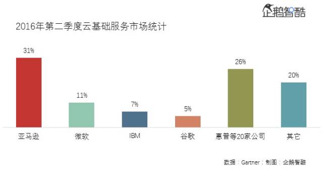 但苹果需要提升云计算能力,它在云服务领域不占优势。市场目前主要被亚马逊、微软、IBM、谷歌把控,四家公司市场份额达到54%。