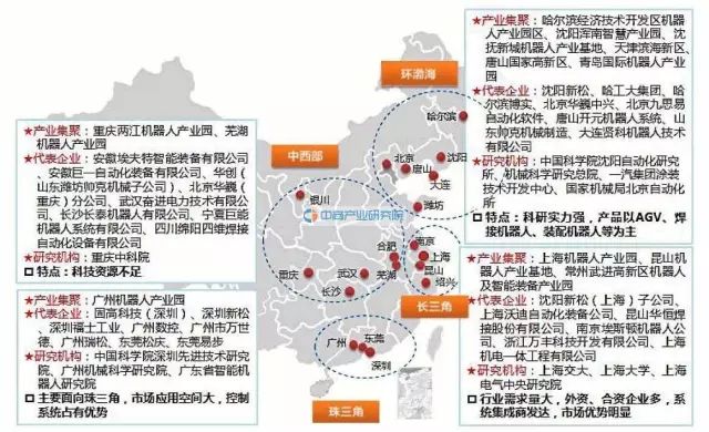 目前,我国工业机器人已形成环渤海、长三角、珠三角和中西部四大产业集聚区。